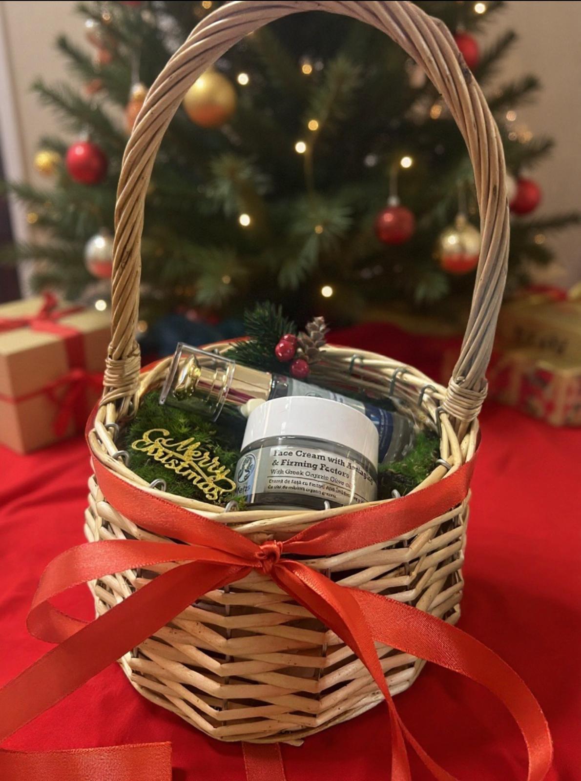 A refined Christmas gift featuring the luxurious Kallist Frozen Greek Botanical Serum, enriched with powerful Greek plant extracts for glow, revitalization, and deep skin renewal. Presented in an elegant frosted festive bag, adorned with velvet ribbon, winter greenery, and delicate holiday details, this gift captures the magic of the season in a sophisticated, natural way.