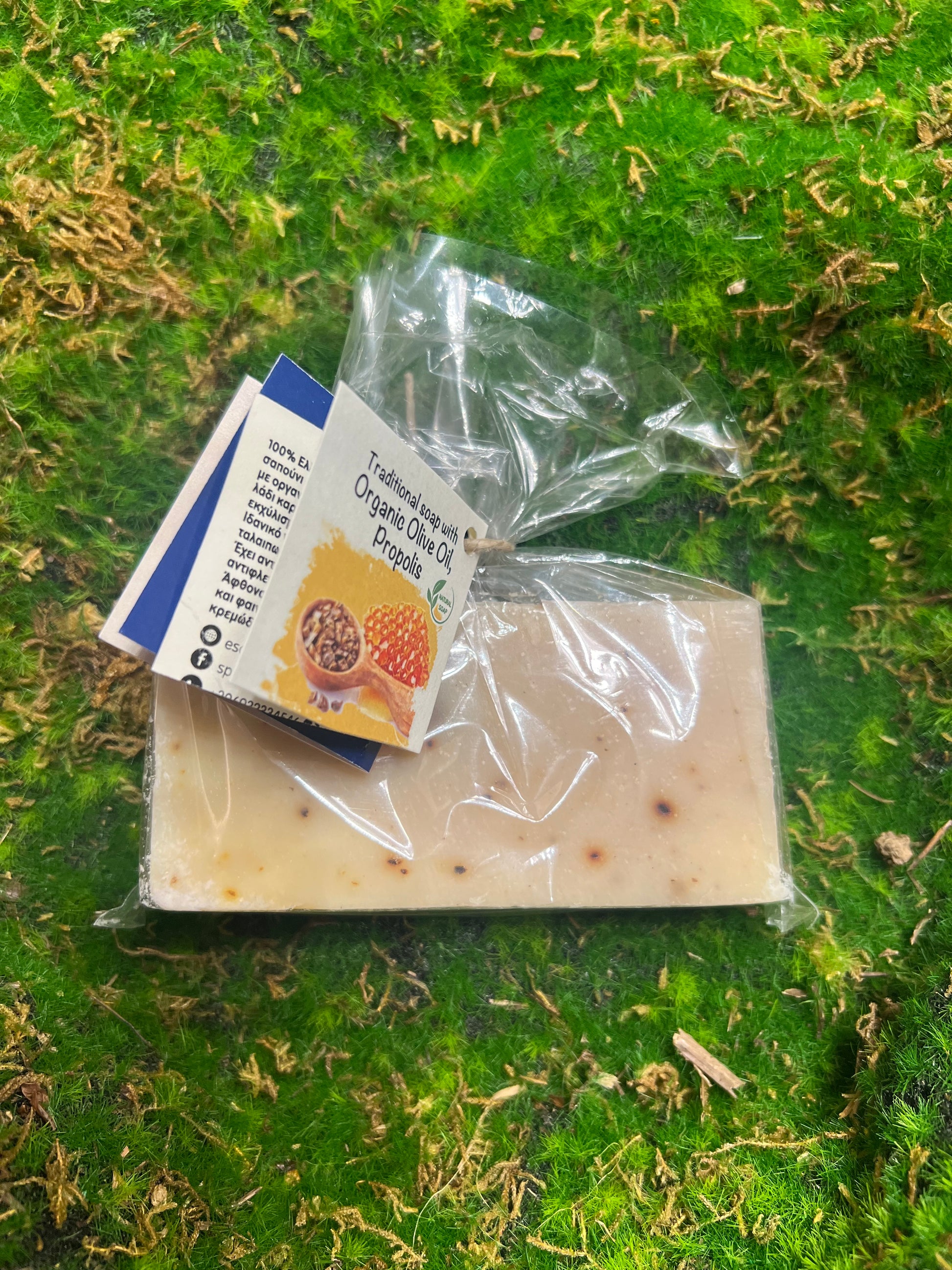 Săpun grecesc 100%, făcut manual, cu ulei de măsline organic, unt de shea, ulei de cocos, ulei de ricin, extract de propolis, vitaminele A, C, E.